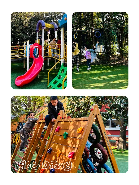 今天下午的阳光甚好,带着孩子们进行了户外活动!你瞧,玩滑滑梯的孩子们有序地排队,玩攀登架的孩子们小心谨慎....快来加入我们的快乐星球吧!
