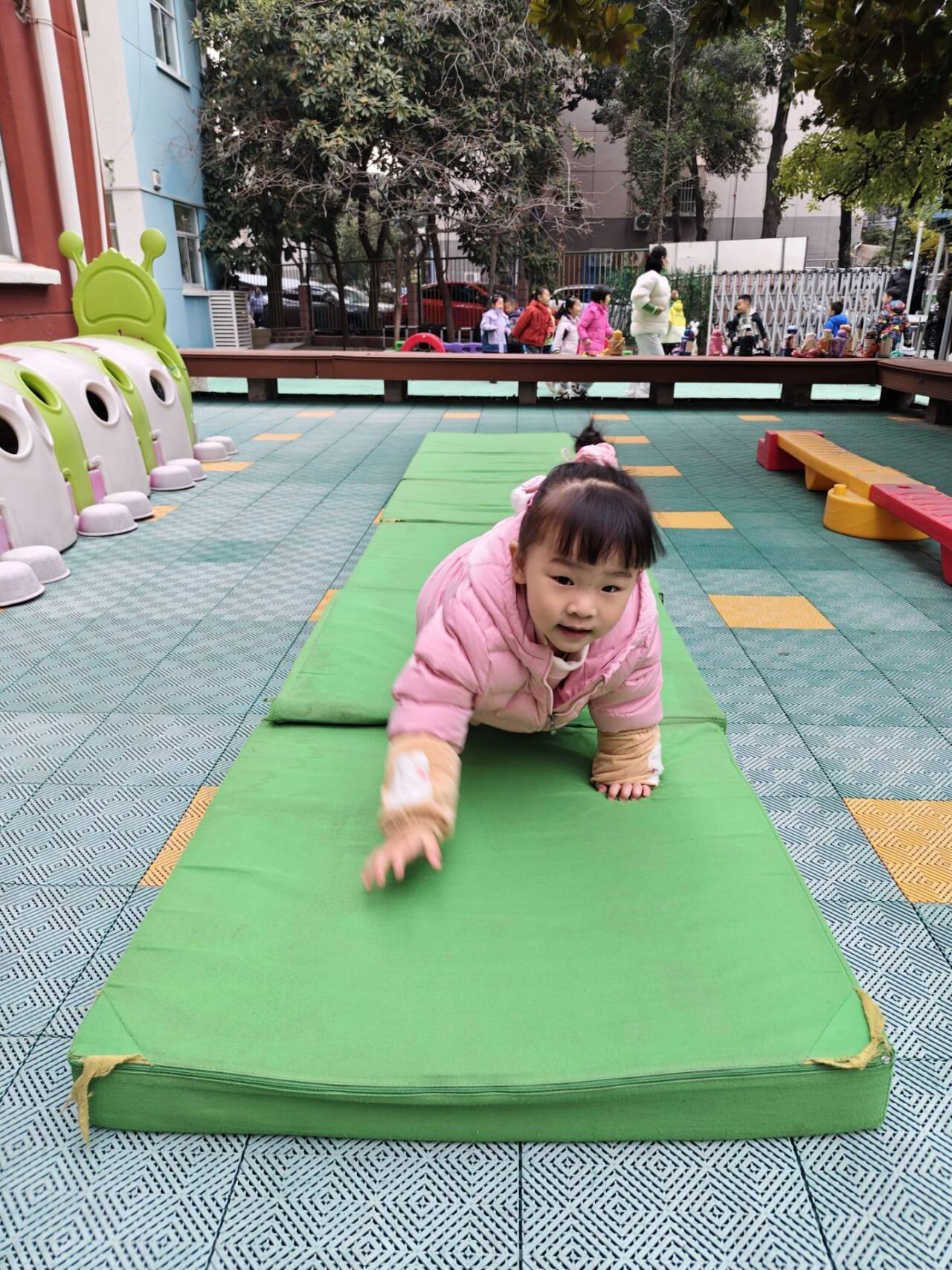 晨间锻炼开始了,孩子们早早的来到幼儿园,瞧!有的爬垫子、有的过小桥,有的钻山洞,孩子们玩得真开心啊!锻炼身体棒棒哒!