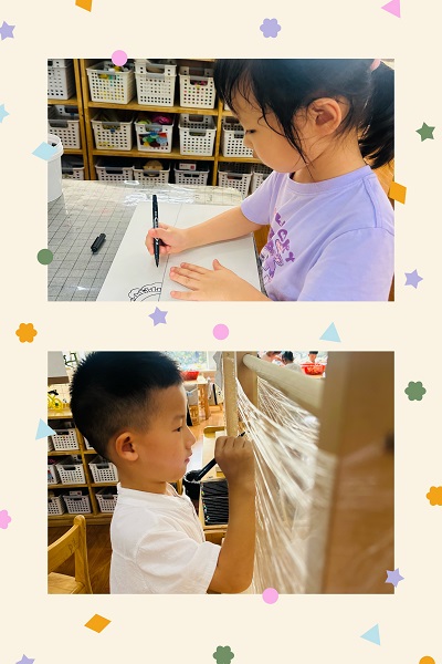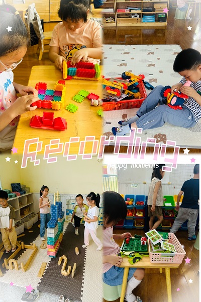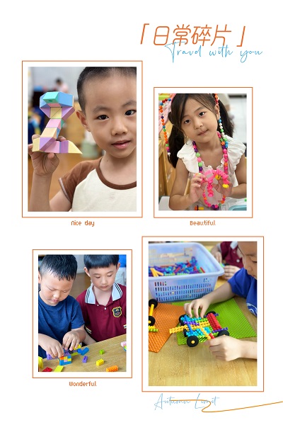 每天的游戏时间是孩子们最喜欢的:建构区、益智区、美工区都是非常受欢迎的区域。你看,佑鸿用魔尺变了一条眼镜王蛇,洛奇的项链、小辫子真漂亮,小悦悦真像一位绘画大师.....