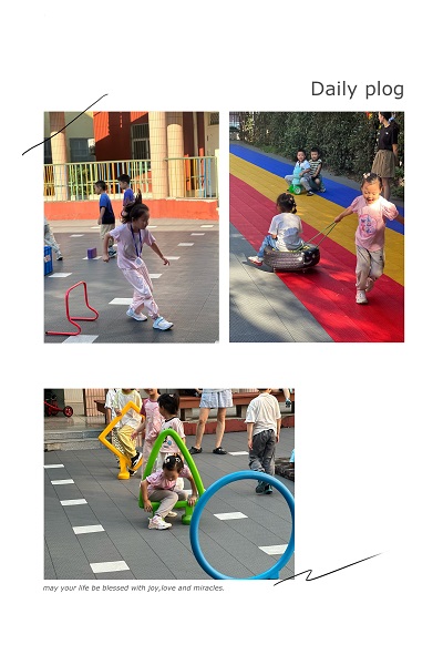小朋友们每天入园前,可爱的老师们就已经放好了晨间锻炼的器材。你瞧,他们玩的多开心!