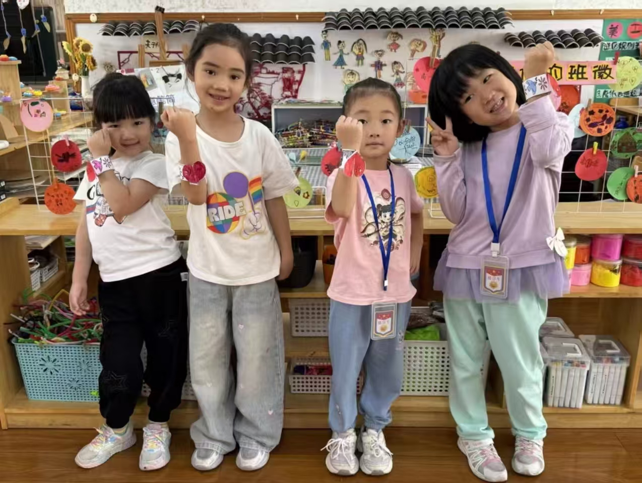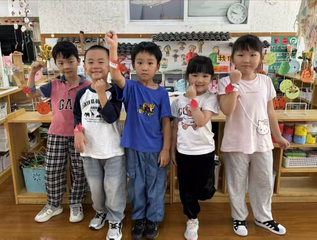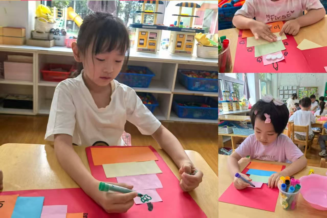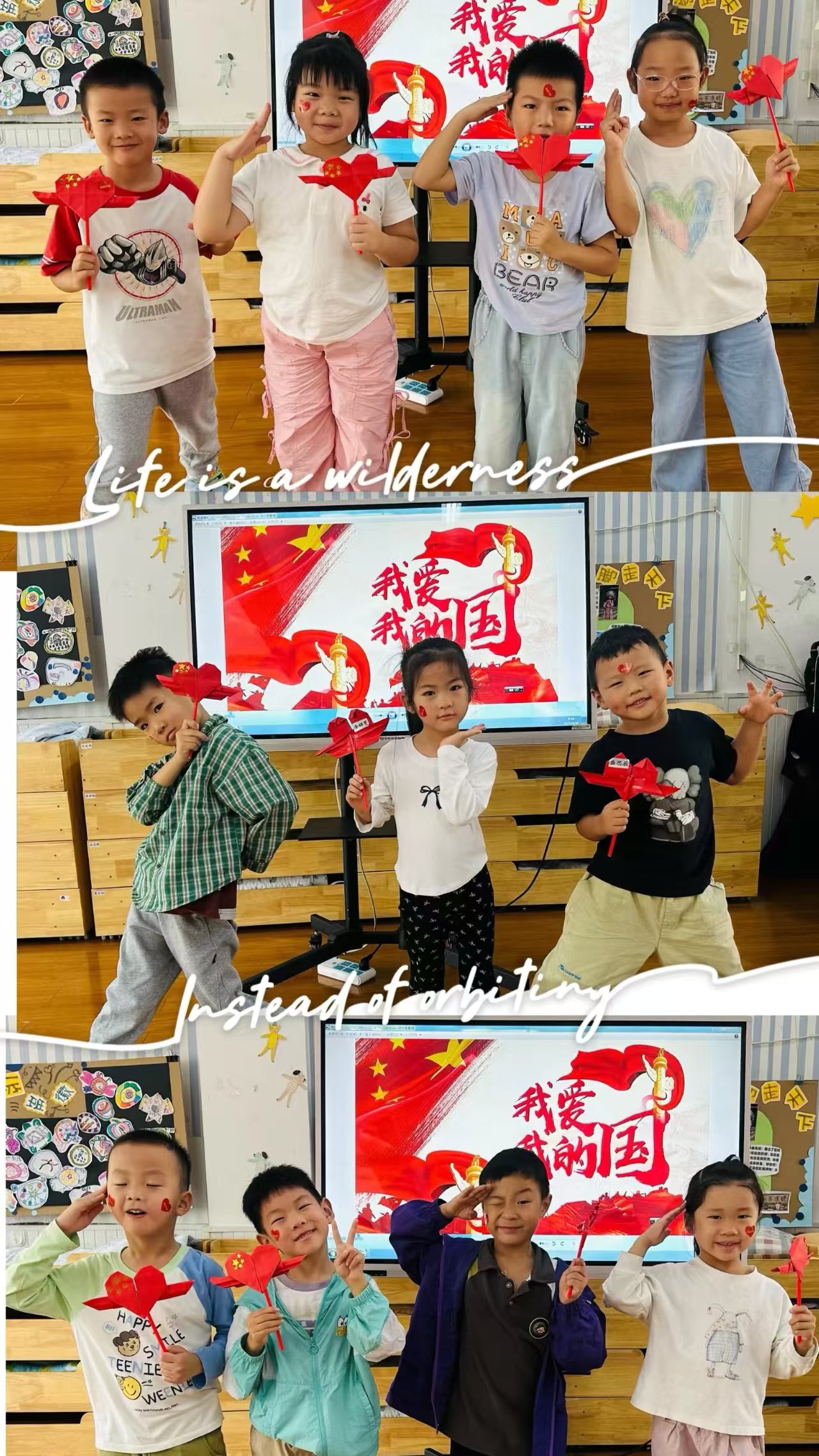“折一折,压一压,一颗红心送给她。”大班的哥哥姐姐们用灵巧的双手,将鲜红的彩纸折成饱满的中国心。指尖的温度赋予了纸张厚重的意义,这颗凝聚着心意的红心,是孩子们对祖国最真挚的告白。他们举着红心轻声吟唱,爱国的种子在歌声与折痕中悄然发芽。