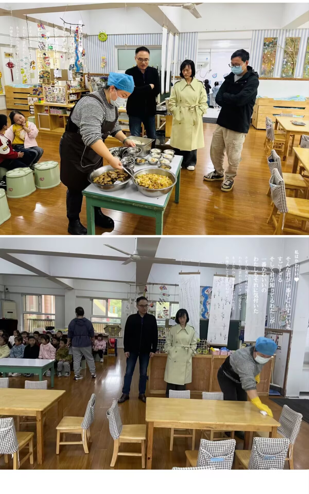 接着,专家们还走进班级,查看班级环境卫生、物品摆放情况的同时,还细致考察了保育老师午餐清消清工作流程等情况,并做出现场指导。